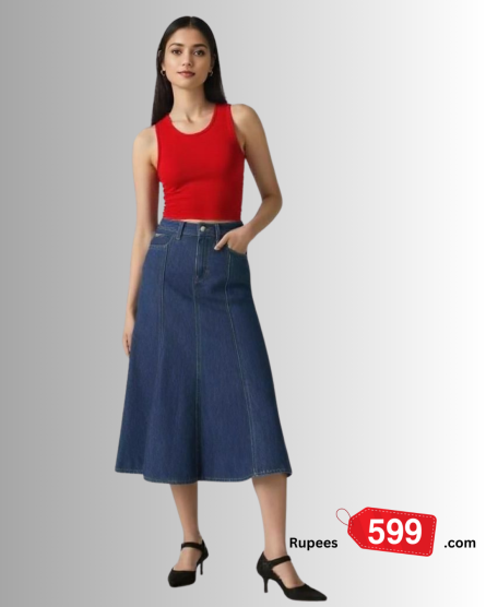 Ladies Blue Fit and Flare Skirt