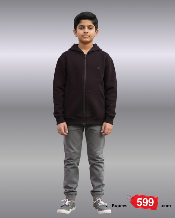 Featuring a full‑length front zip and a hooded design, this jacket provides light warmth and practicality for cooler days. The clean, minimal look makes it easy to pair with jeans, trousers, or joggers, making it ideal for school, outings, or daily use.