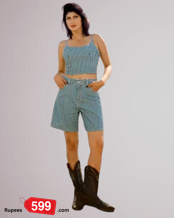 Bring a fresh, nautical-inspired look to your wardrobe with our Ladies Blue Striped Shorts. Designed for effortless style and all-day comfort, these shorts feature a lightweight fabric and a relaxed fit, perfect for warm-weather outings. The subtle blue and white stripes add a touch of charm, while the tailored finish keeps it polished and versatile.