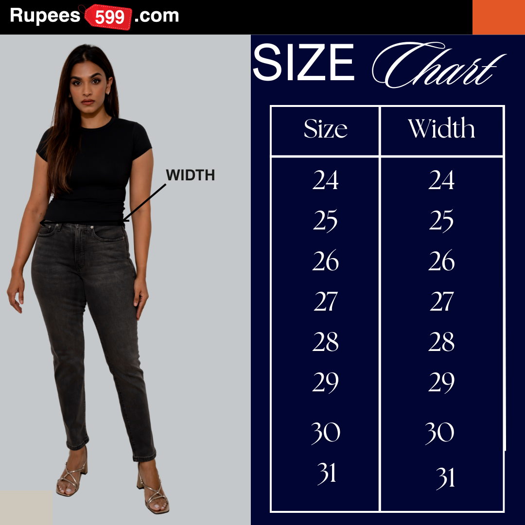 Ladies High Rise Black Straight Denim Size Chart