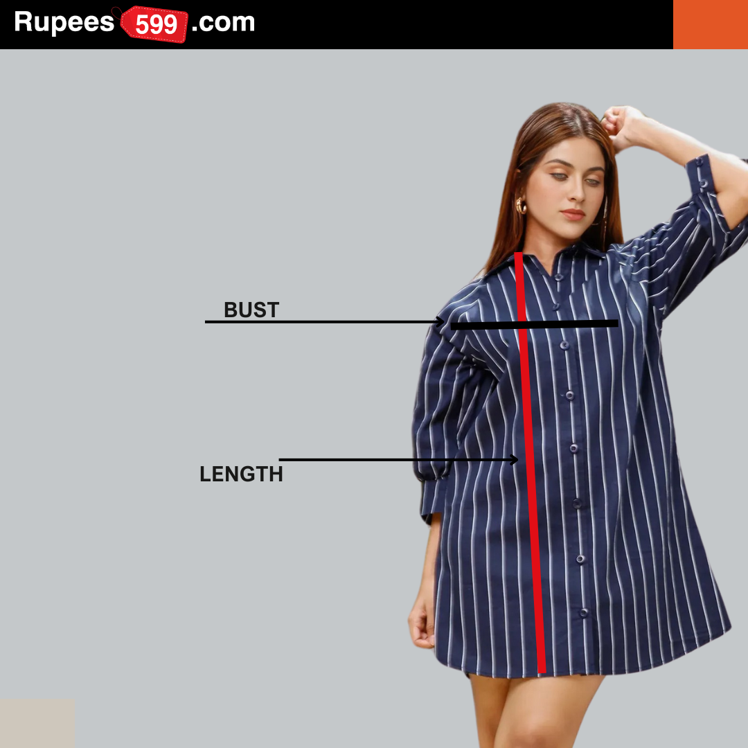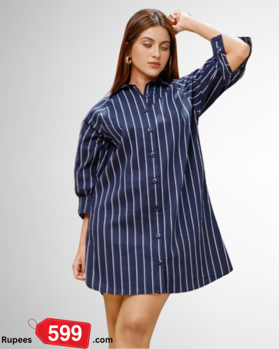 Elevate your wardrobe with our Navy Striped Shirt Dress, perfect for both office wear and casual outings. Crafted from a soft, breathable cotton blend, this dress features a classic button-down front, a comfortable fit, and convenient side pockets. The elegant shirt collar adds a polished touch, allowing you to style it effortlessly for various occasions.