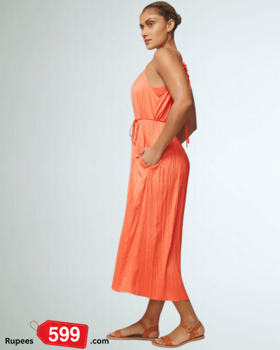 Designed with a flowy midi-length skirt that moves beautifully with every step, this dress also features hidden side pockets and a versatile tie belt that can be styled at the front to cinch the waist or at the back for a relaxed fit. Perfect for weddings, evening gatherings, or special occasions, this dress promises comfort without sacrificing style.