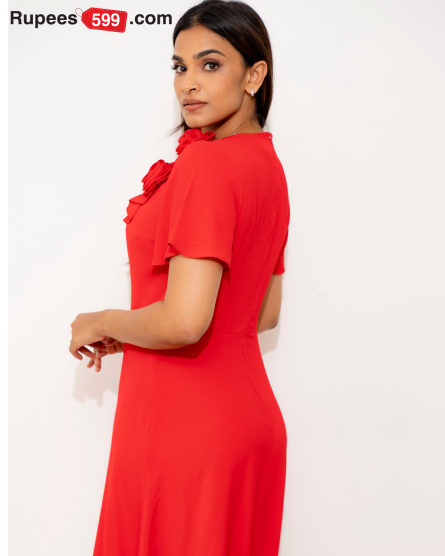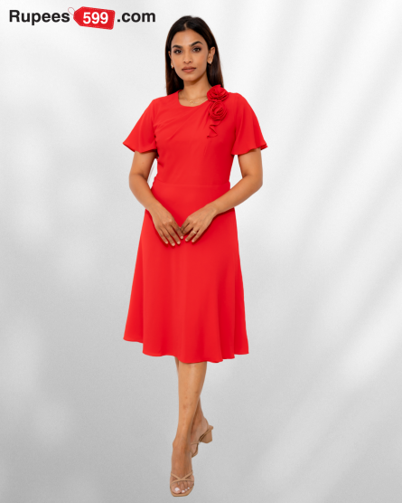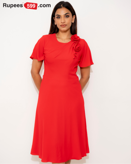 Introducing our stunning Ladies Red Flower Dress, a captivating blend of sophistication and allure that will make a bold statement at any event. Meticulously crafted to perfection, this dress is designed to accentuate your femininity and command attention.