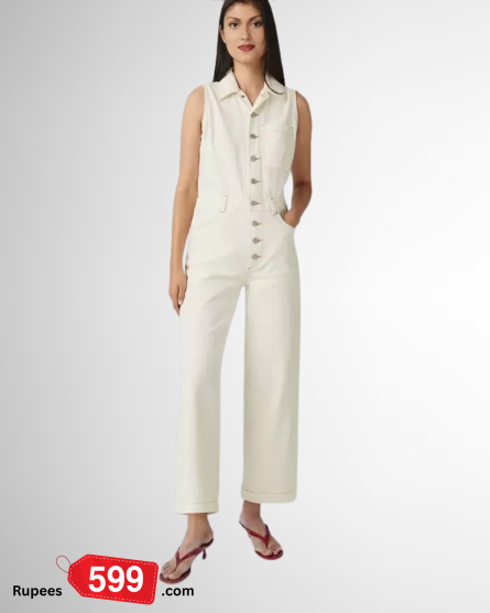 Effortlessly chic and endlessly versatile, our Ladies Sleeveless White Denim Jumpsuit is your go-to piece for bold, confident style. Crafted from premium white denim, this jumpsuit features a sleek sleeveless cut, a flattering silhouette, and practical details like front buttons and side pockets. Whether you’re dressing it up with heels or keeping it casual with sneakers, this one-piece wonder is perfect for any occasion.