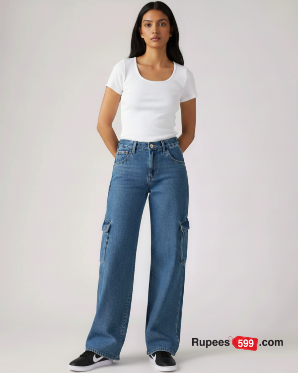 Functional cargo pockets add a utilitarian edge, perfect for carrying essentials while keeping your look chic and casual. Ideal for streetwear, travel, or everyday wear, these jeans combine practicality with contemporary fashion. Pair them with a fitted top or oversized tee for a versatile, fashion-forward outfit.