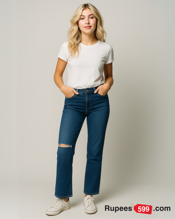 Step into everyday confidence with the LiCC Ladies’ Mid-Rise Straight Jeans in a rich dark blue wash. These jeans are designed for all-day wear with a classic straight-leg cut, a comfortable mid-rise fit, and a subtle distressed detail for a touch of modern edge.