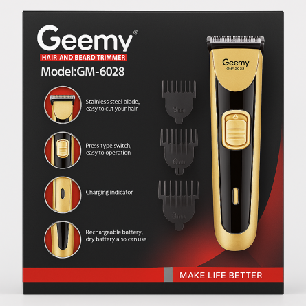With its press‑type switch, charging indicator, and multiple clip‑on guide combs, the GM‑6028 provides flexibility for shaping, trimming, and maintaining different hair lengths with ease. Perfect for home use and light professional use.