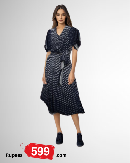 Elevate your wardrobe with this stunning V-Neck Wrap Navy Dress. Designed for both comfort and style, this dress features a flattering V-neckline that enhances your silhouette and a wrap design that cinches at the waist, creating an elegant hourglass shape.