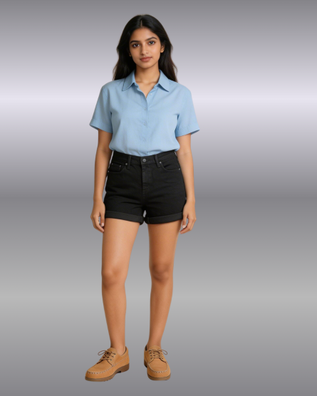 Ladies’ Mid‑Length Comfort Rolled‑Up Shorts – Black