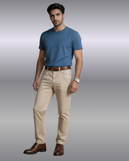 Light Blue Casual Cotton Pant – Everyday Comfort Fit